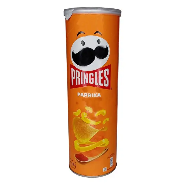 چیپس پرینگلز مدل Pringles paprika وزن 165 گرمی، محصولی امریکایی و تولید شده در شرکت پرینگلز Pringles انگلستان، چیپس پرینگلز پاپریکا دارای طعم فلفل قرمز و جذاب و دوست داشتنی است و یکی از تنقلات پرطرفدار بشمار می رود. بدون کلسترول و بی ترانس بوده و محصولی بسیار ایده آل برای افراد گیاهخوار می باشد.